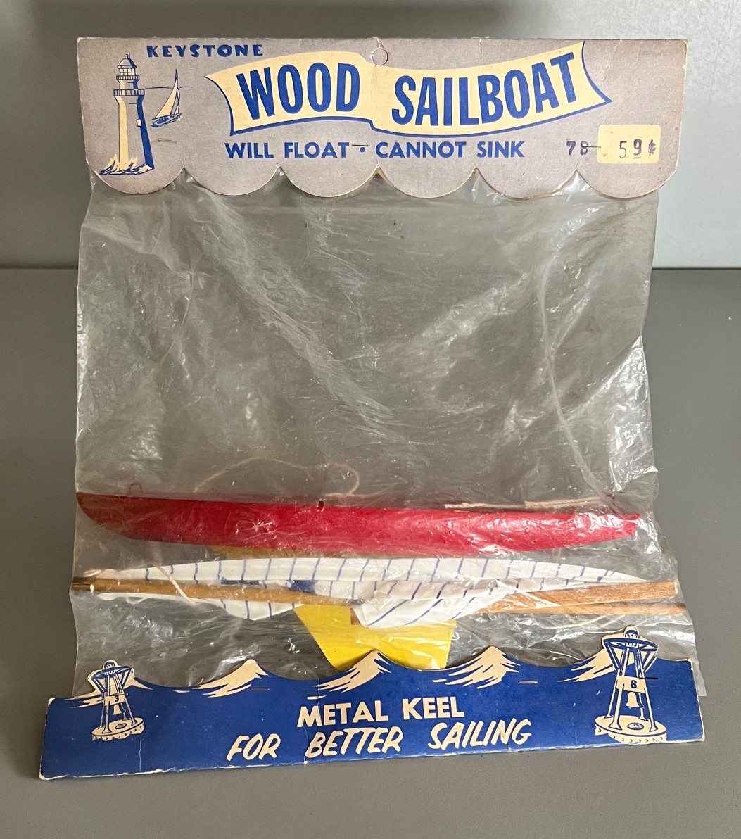 This sailboat measures 9 inches long by 12 inches tall when the mast is installed. These were later items as far as production. I believe it is from only 1957, the last year before they closed.